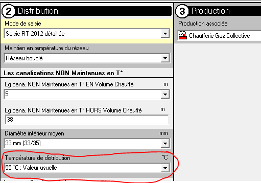 Dans ce cas là, il faut aller dans le système d'ECS pour regarder la température de distribution. De là, il faut passer la valeur de la température de 55°C à 50°C pour que le calcul fonctionne :