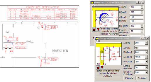 Fisa-RESA est un applicatif pour AutoCAD® version pleine pour dessiner rapidement des plans de réservations dans les dalles, les parois, les poteaux et les poutres.